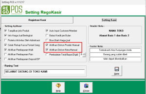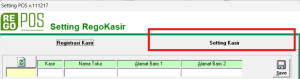 Langkah 3. Pada tampilan Setting RegoKasir Pilih Tab Setting Kasir