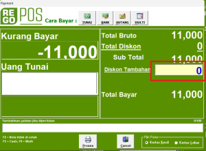 Langkah 4. Tambahkan nominal Diskon kemudian tekan Enter, layar akan menampilkan Diskon seperti pada gambar